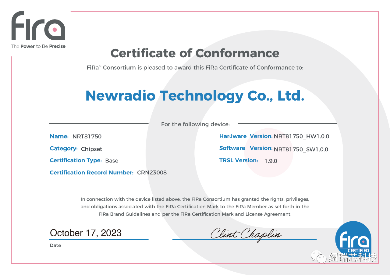 此次车规认证由工业与信息化部电子第五研究所中国赛宝实验室主导,经过其权威测试,纽瑞芯UWB定位通信系统芯片NRT81750于2023年11月顺利通过AEC-Q100车规级可靠性认证,这代表纽瑞芯车规级芯片产品质量和可靠性已获得国际权威认证体系的认可。