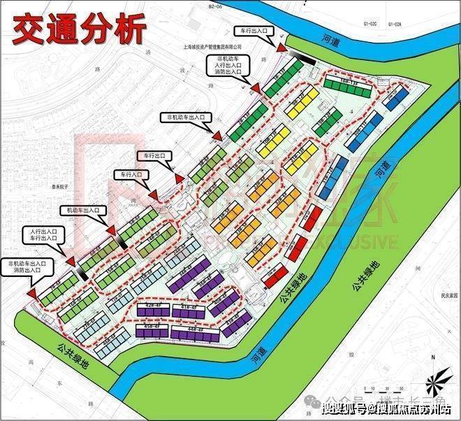 交通方面,小区出入口全部集中于北侧道路上,做到机动车与非机动车一进小区即可下地库,实行严格的全人车分流。