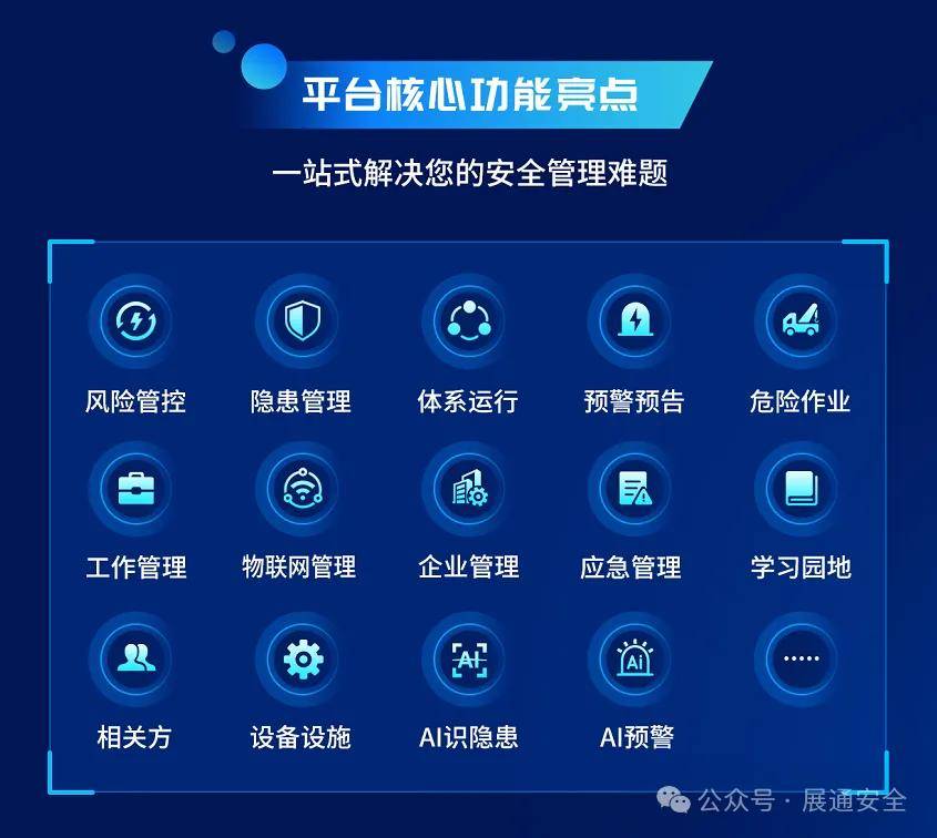 平台以构建双重预防机制为主线,通过岗位角色下发工作任务,依托平台标准化流程指引,专业化安全智库支持,AI大模型识别隐患、AI智能监测现场预警,专业助力安全管理人开展各项安全工作,有序引导全员参与,主动落实各自岗位安全责任。