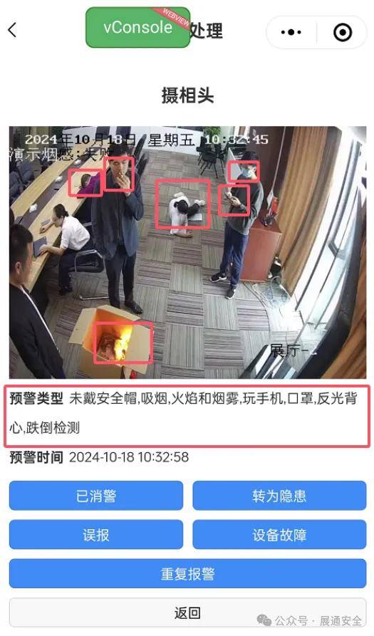 依托“AI大模型”,可联动摄像头智能巡检,自动识别现场人员的不安全行为、物和环境的不安全状态,发现异常及时预警提醒。不需要企业另外升级或者采购设备,低成本解决“人防”管理手段不足。
