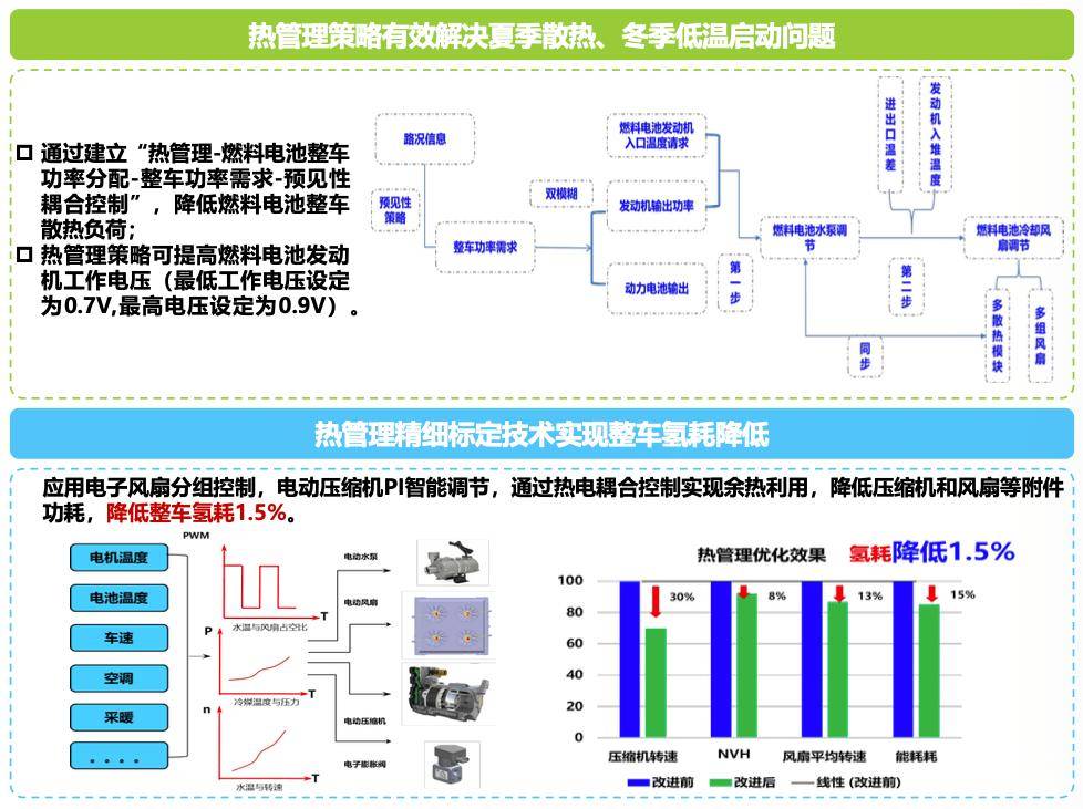 陕西重汽有限公司燃料电池专家侯权提出,针对大功率燃料电池重卡运行特性,需制定全工况适配的热管理策略,推动热管理从分部件独立控制向多系统集成化智能控制升级,将控制逻辑由模糊控制优化为基于实时工况的精准控制。此举可实现驾驶室与电池制冷需求的动态均衡分配,充分回收利用环境及系统余热,大幅提升车辆在宽温区、极端条件下的环境适应性,降低附件功耗,改善驾乘舒适性。