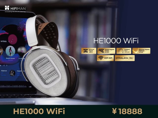 耳机内置了HYMALAYA Mini DAC高清音频解码芯片,沿袭了经典型号HE1000系列使用的纳米级厚度的自研纳米振膜技术,振动质量极轻,实现非常理想的高频响应,低失真高瞬态,音场非常宽广,主观听感细腻自然又不失动态,高频极具空气感,低频动态又非常凌厉。HE1000 WiFi的磁体混合使用了“隐形磁体”和“增强型磁体”两项专利技术,保证单元灵敏度的同时减轻了产品重量。该产品还采用了今年夏天发布的“次世代人体工学头带”设计,极大提升了佩戴舒适性和可靠性。详细解读: