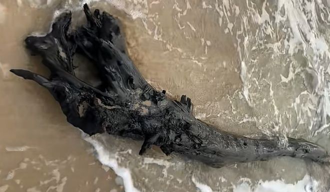 2025年12月1日,IP属地为广东的博主“@多多是个爱玩的小盆友啊”去海南的某片海滩散步的时候,意外发现了一块大木头,看起来像是一棵树失去枝干后的躯干。听着也没什么稀奇的,但是你听博主的描述:“有谁知道这是什么木头吗?通体发黑,没有树干,而且巨沉!”