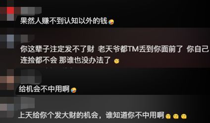 更多的网友对博主的感觉是“怒其不争”,有人说:“果然人赚不到认知以外的钱!”有个网友很过分,他甚至说博主这辈子注定发不了财。