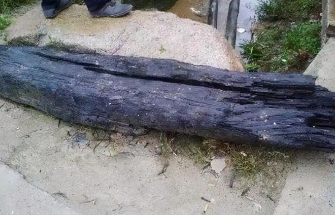 因为我就查到了在海边发现阴沉木的案例,这起案例发生在2014年,由福建省泉州市晋江的渔民在东海埔海域捞起一根长达17.85米、重约两吨的阴沉木。